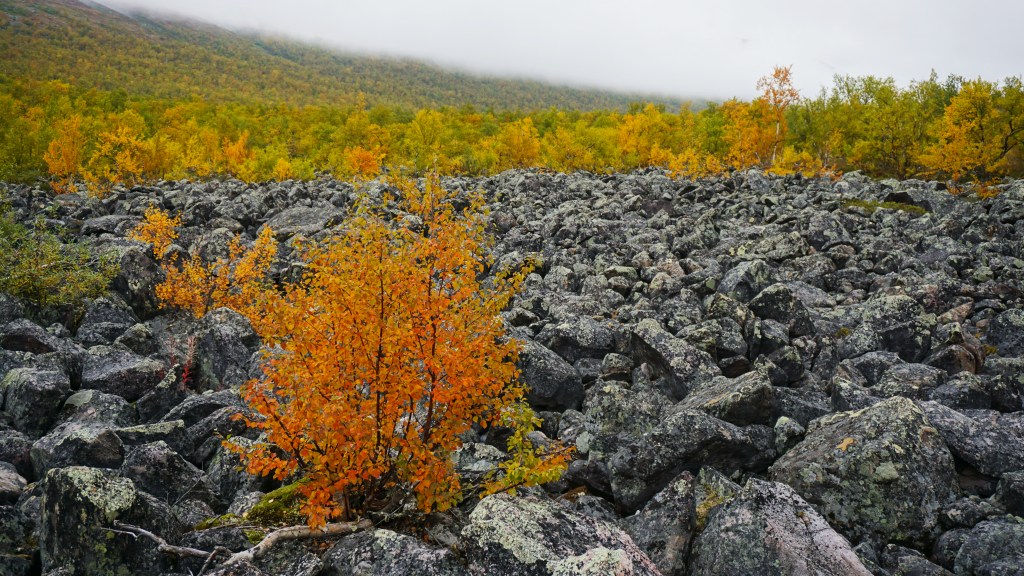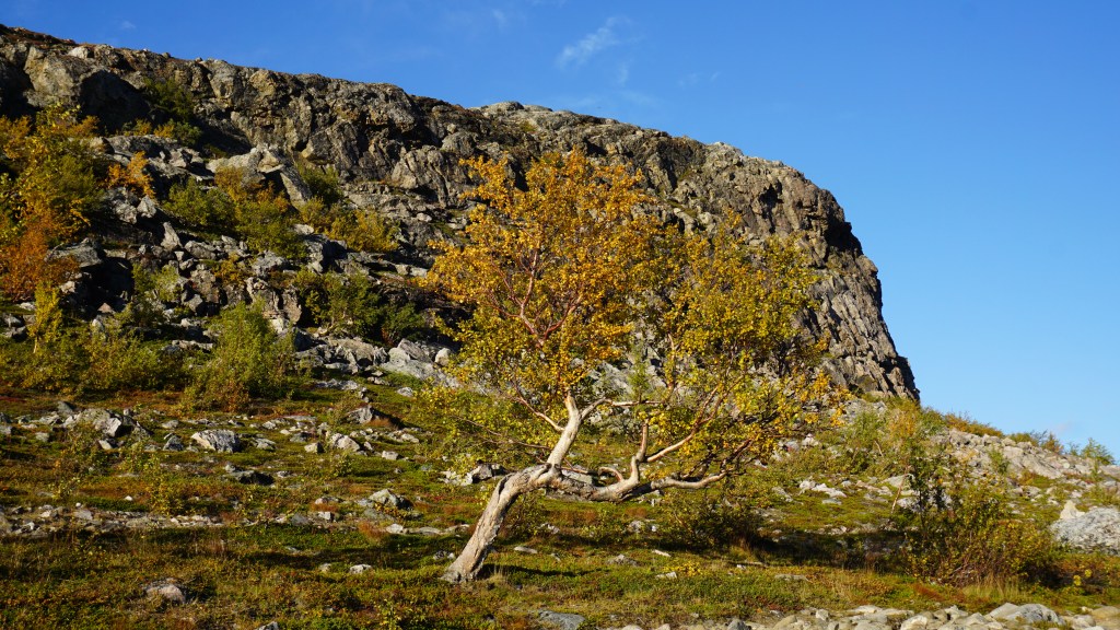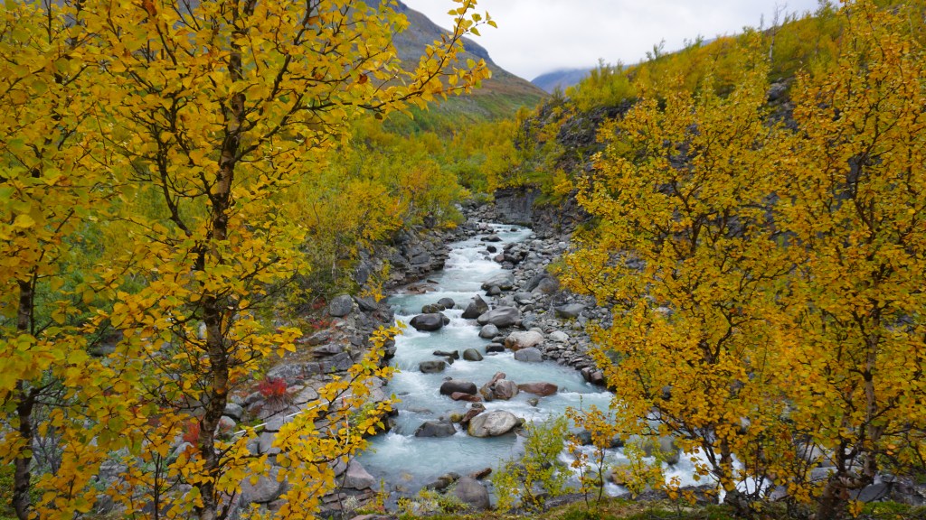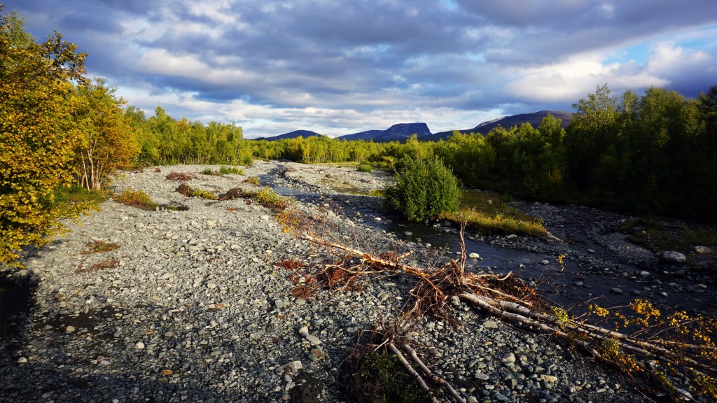 1. Abisko – Abiskojaure (15km): Den ersten Tag wanderst Du immer entlang dem Fluss Abiskojåkka durch den Abisko-Nationalpark. Gleich auf dem ersten Kilometer wartet mit der ein kleiner, sehr fotogener Canyon auf Dich, einer der prägenden Blicke des Weges. Diese Etappe ist ganz anderes als der Rest des Weges bis zur siebten Etappe, denn der Weg führt hier oft durch den Wald. Am Weg gibt es vor Abiskojaure nur einen ausgeschilderten Platz, an dem Du zelten darfst.