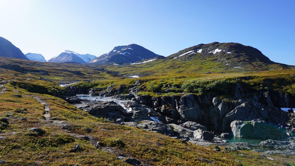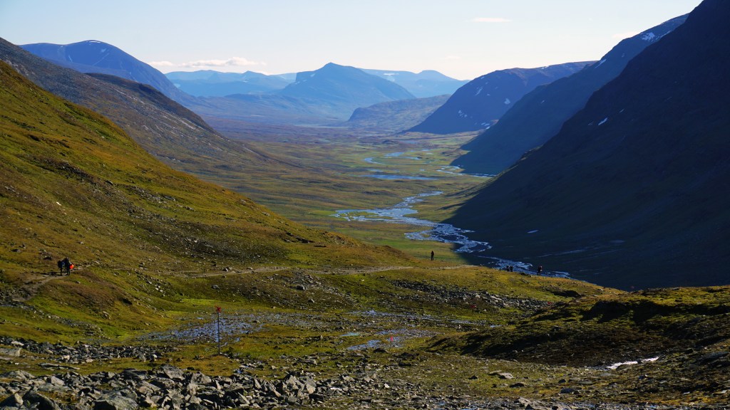 Meine beiden Highlights waren die plötzlichen Blicke in Täler, die sich plötzlich gen Süden auftuen; einmal von der Hütte Alesjaure und vom Tjäktja-Pass (1150m), dem höchsten Punkt des Weges.