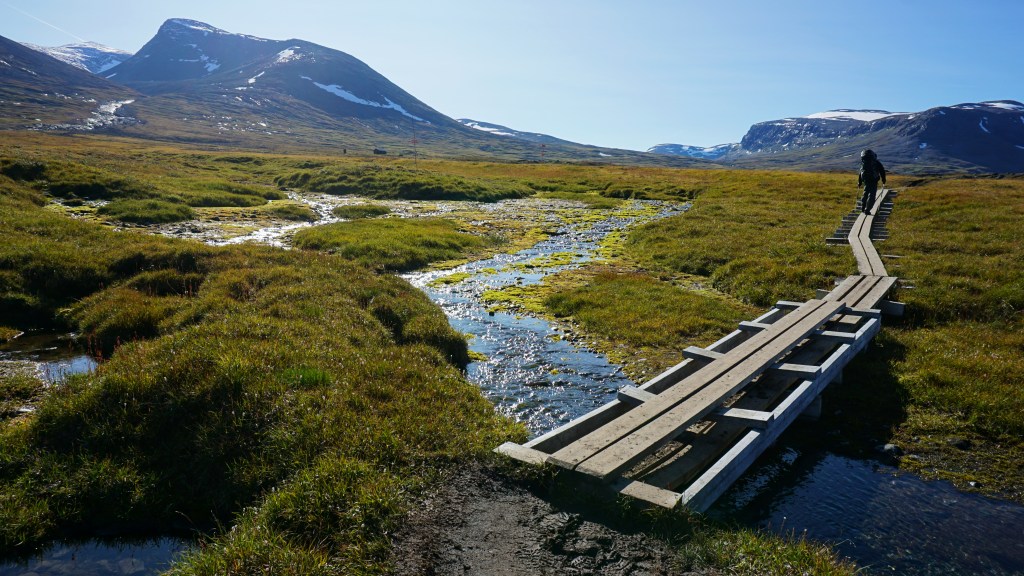 Etappen: Wer zeltet, kann sich die Etappen frei einteilen, da außerhalb des Abisko-NP zelten in der freien Natur erlaubt ist. Für alle anderen Wanderer:innen stehen im Abstand einer Tagestour Hütten im Fjell. Meine Tagestour-Charakterisierungen orientiert sich an dem Abstand der Hütten. Als ich mit dem Zelt unterwegs war, habe ich aber die kurzen Etappen 3/4/5/6 von Alesjaure bis Kebnekaise teilweise zusammenfasst, was bei gutem Wetter, mit Zelt und Fitness gut geht. Wer die Landschaft lange genießen möchte, wandere gerne mit viel Muße …