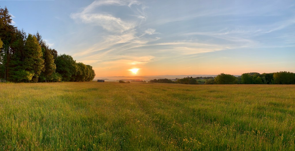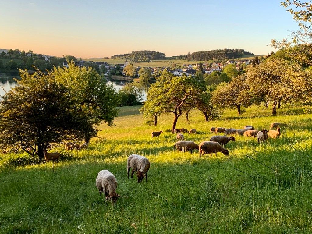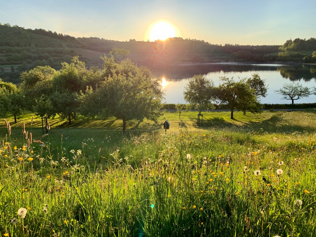 Maare bei Daun (Etappe 11): … gleich drei der zehn mit Wasser gefüllten Vulkankrater liegen dicht beim Ort Schalkenmehren. Die hier entstanden See sind – falls Du nur einen Tagesausflug in die Eifel planst – einen Besuch wert. Für mich war der morgendliche Spaziergang vom Hotel zu den Maaren bei Sonnenaufgang einer der bleibenden Eindrücke der Wanderung.