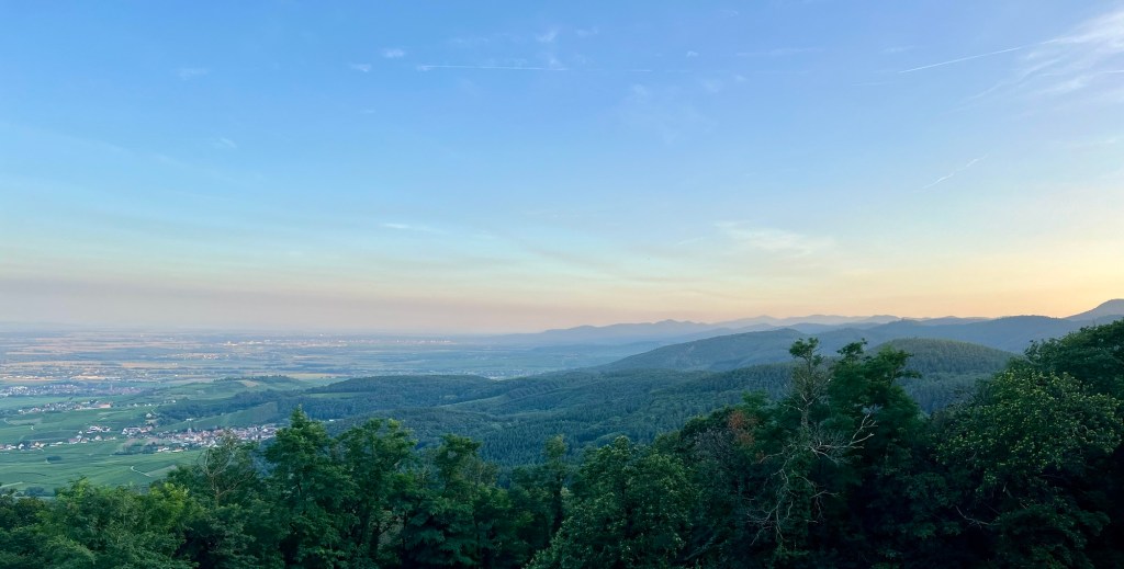 Tief in die Vogesen, bis ins Elsass und über den Gipfel des Donon, mit 1009m der nördlichste Tausender des Gebirges, führt der GR 5 heute. Die Steigungen sind zumeist angenehm. Es geht vorwiegend durch Wald, doch wenn es mal Ausblicke gibt, dann sind die fantastisch. Da es am Zielort keine Schlafmöglichkeit aber einen Bahnhof gibt, fahre ich spontan nach Straßburg. Ebenfalls eine schöne Stadt, wenn ich sie auch nur kurz bei einem Abendspaziergang kennenlerne.