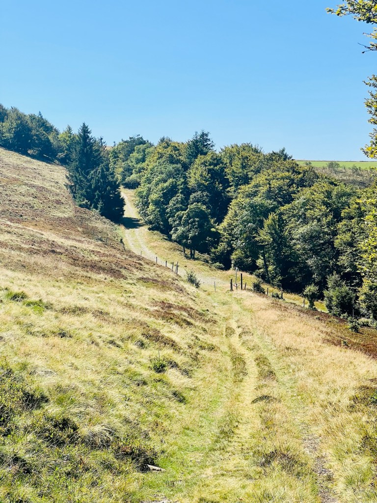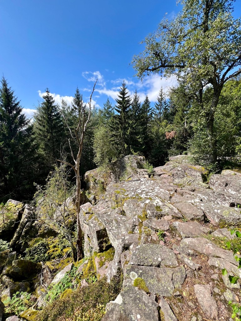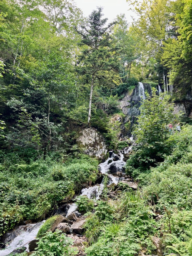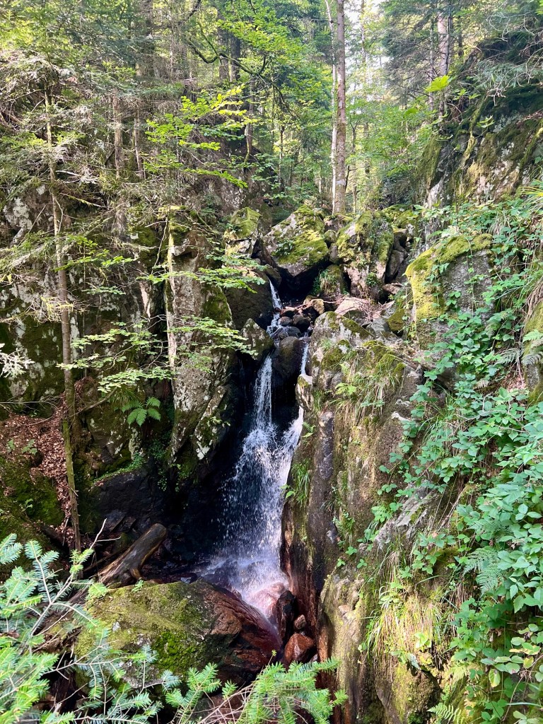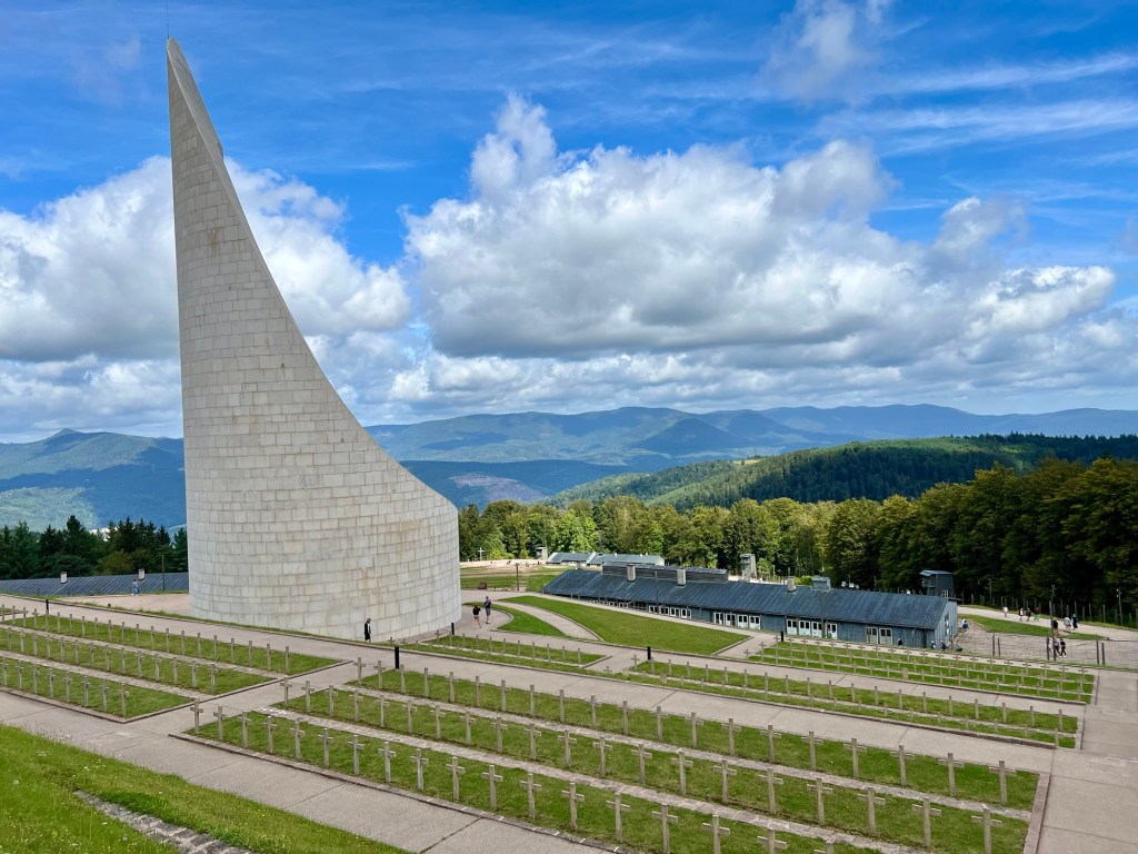 Wieder geht es den ganzen Tag durch den Wald – mal durch wunderschönen, mal durch eher gewöhnlichen. Wieder geht es hoch hinaus. Und dann gibt es wieder drei bemerkenswerte Punkte: die bedrückende KZ-Gedenkstätte Natzweiler-Struthof vor idyllischem Landschaftspanorama, die alpine Hochebene um den Champ du Feu und am Ende einen romantischen Wasserfall.