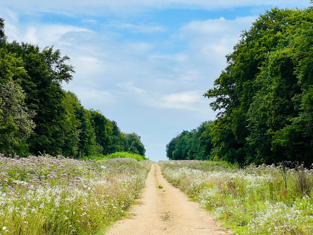 Abschied von der Mosel, als der Weg nördlich von Nancy von der westlichen auf die östliche Moselseite Lothringens wechselt. Ab heute geht es über das Lothringer Hochplateaus gen Osten, die Vogesen in ein paar Tagen als Ziel. Unterwegs fühlt es sich nach Strecke-Machen in schöner Landschaft an. Auf den freien Feldern wartet die sengende Sommerhitze, im Wald umschwirren mich die nervigen und stechenden Viecher. Amance bleibt mir besonders in Erinnerung, weil es erhaben auf der Spitze einer Hügelkette thront.