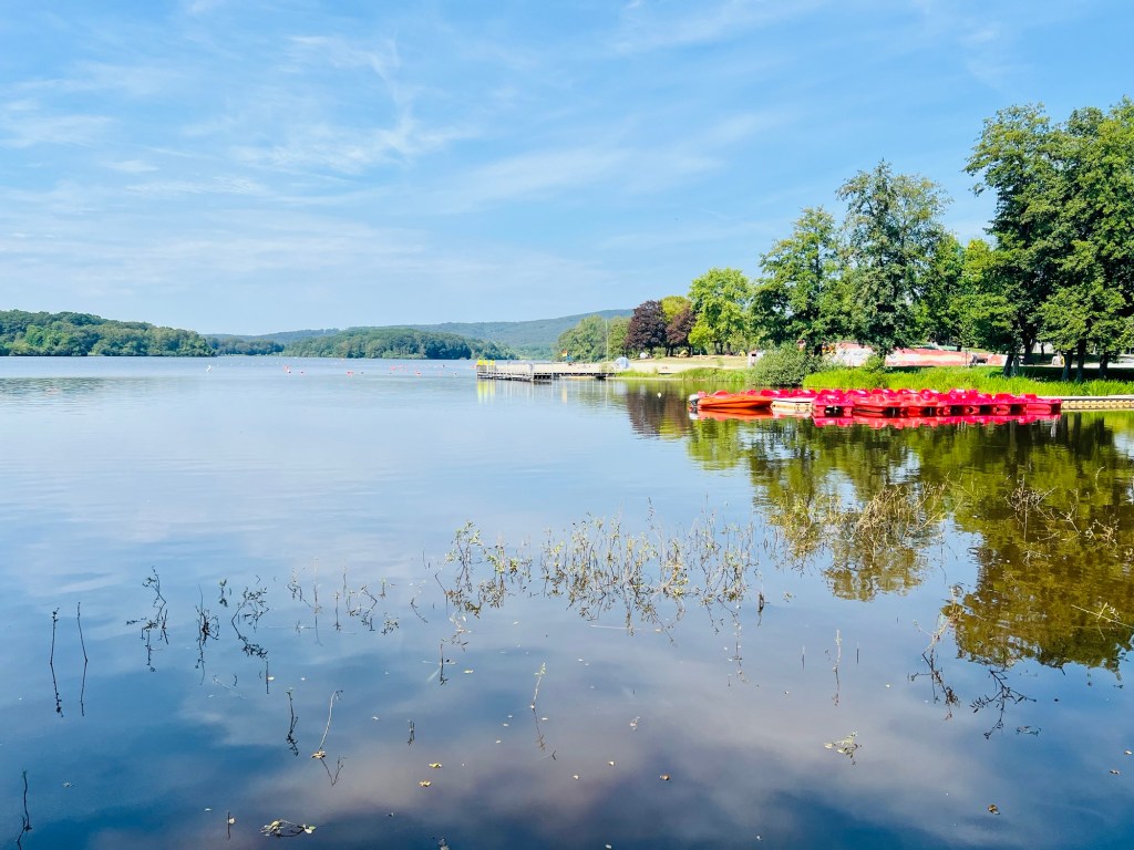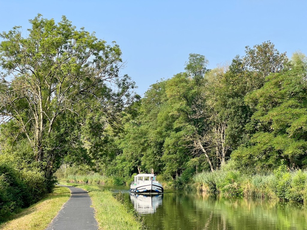 Drei Highlights machen diesen Wandertag zu einem besonderen. Erstens führt der Weg vormittags weiter durch das schöne Seen- und Kanalgebiet – ich mag Wandern am Wasser einfach. Zweitens tauchten mittags plötzlich die Vogesen am Horizont auf und ich bin auch schon – spätestens ab Saint Quiring – etwas rein gewandert, was gleich ein anderes Wandergefühl macht – ich mag das Wandern in den Bergen einfach bzw. mit Bergkulisse. Drittens habe ich heute die 1000-KM-Marke auf dem GR 5 geknackt.