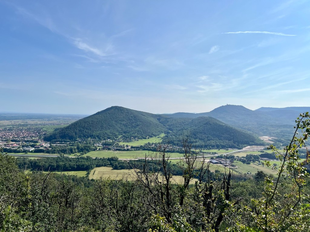 Typisch für die zweite Woche des GR 5 in den Vogesen ist, dass er dem östlichem Kamm mit den höchsten Gipfeln gen Süden folgt und immer mal in Orte des Rheintal absteigt. So auch heute: Vom hübschen Weinort Andlau geht es 700m stramm aufwärts bis zum Gipfel des Ungerbergs (901m), der nur einen eingeschränkten Blick auf das Umland bietet. Über den Grad verläuft der GR 5 entlang der Rheinebene lange abwärts. Dies ist der Tag der Burgruinen, u.a. die Burg Bernstein und die Ortenbourg. Bei Châtenois führt der Trail wieder in die Ebene, um dann Richtung Haut-Koeningsbourg in die Hochvogesen anzusteigen.