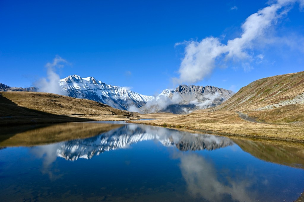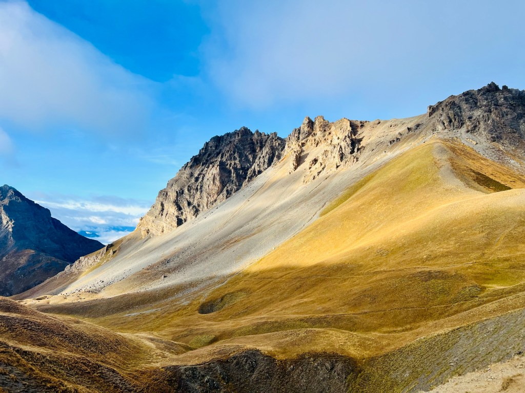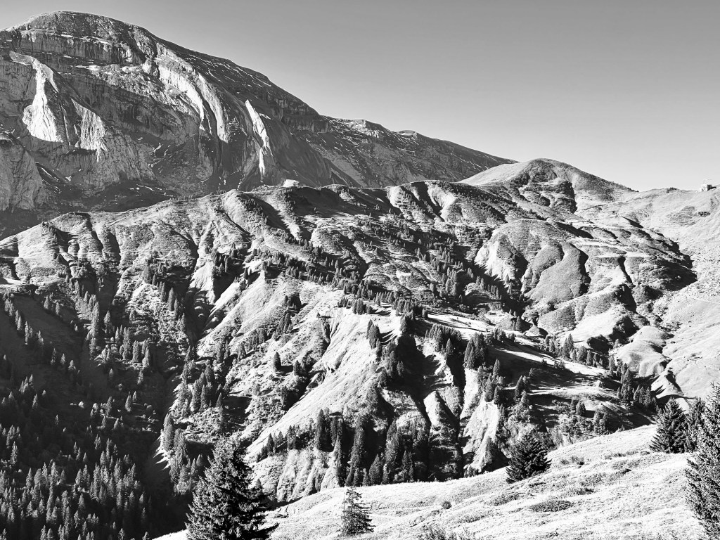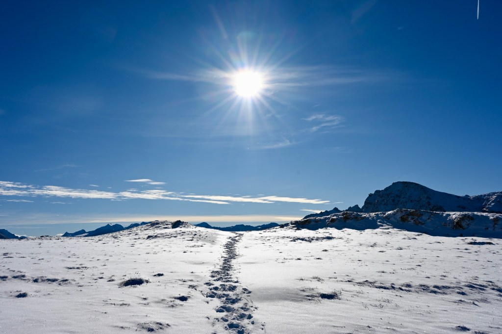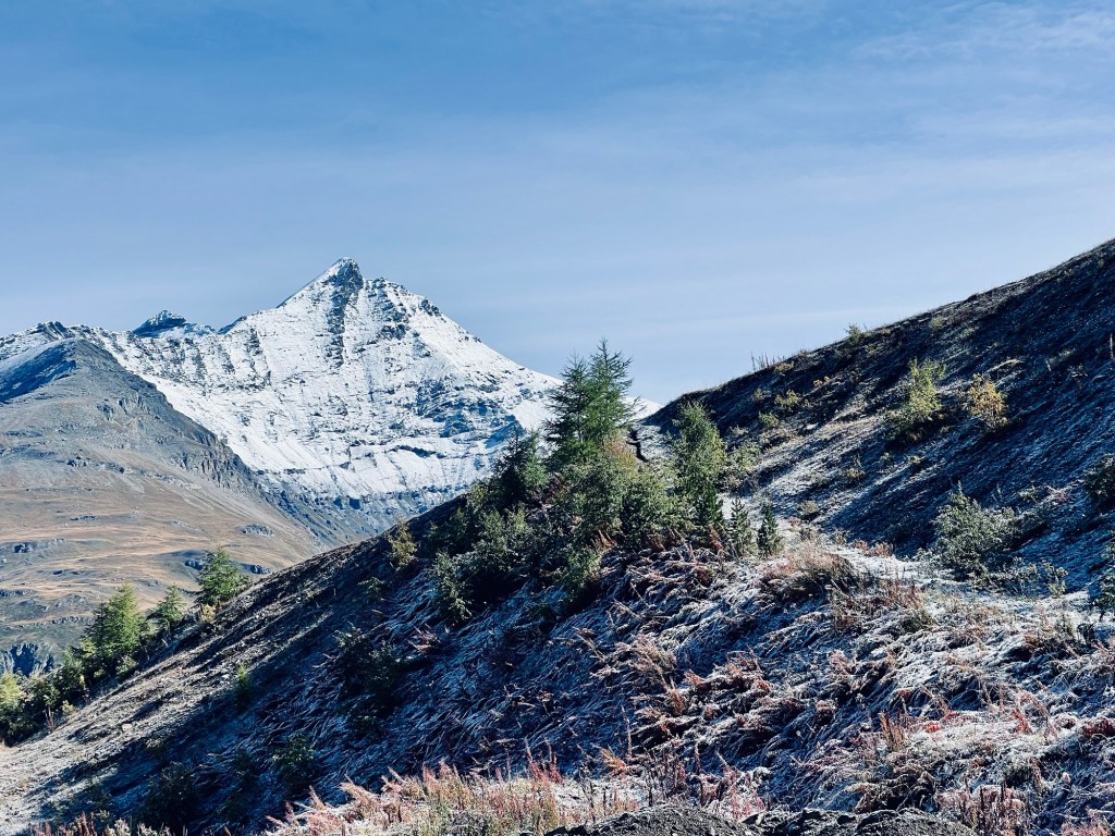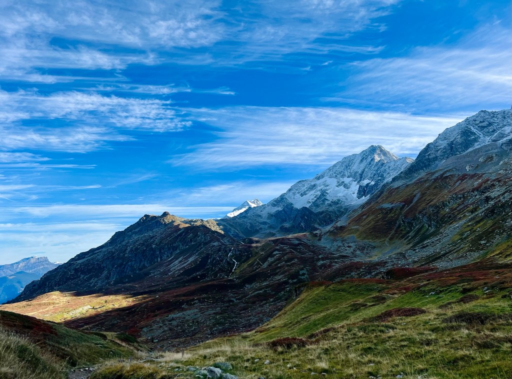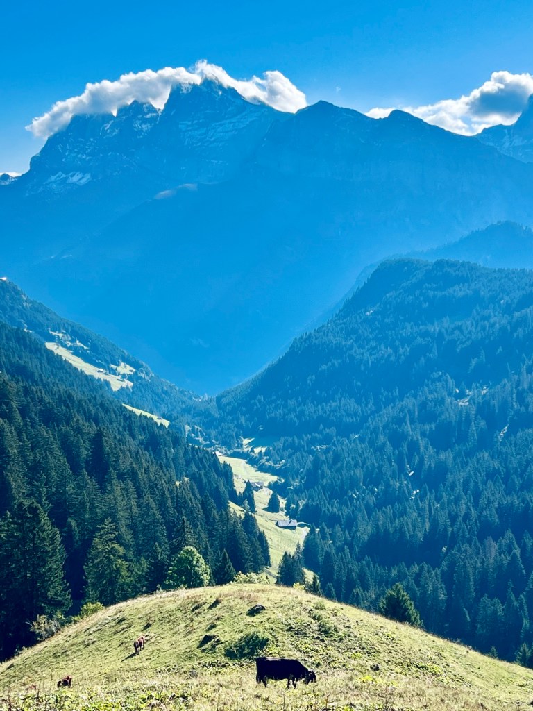 Nach einer Nacht um den Gefrierpunkt begrüßt mich ein wolkenloser Morgen. Die Wanderung führt im Wallis (Val-d‘Illiez) lange am Hang durch Skigebiete und offenbart den Blick auf die fantastische Bergkette Dents du Midi mit dem Haute Cime (3258 m) als die höchster Erhebung. Nach den anstrengenden ersten Tagen und überwiegend geschlossenen Hütten und Berggasthöfen nutze ich die Gelegenheit, die Etappe kürzer zu halten und noch eine Hüttenübernachtung zu genießen. Mal sehen wie viele mir auf dieser Tour noch vergönnt sein werden. Ein wunderbarer Tag.