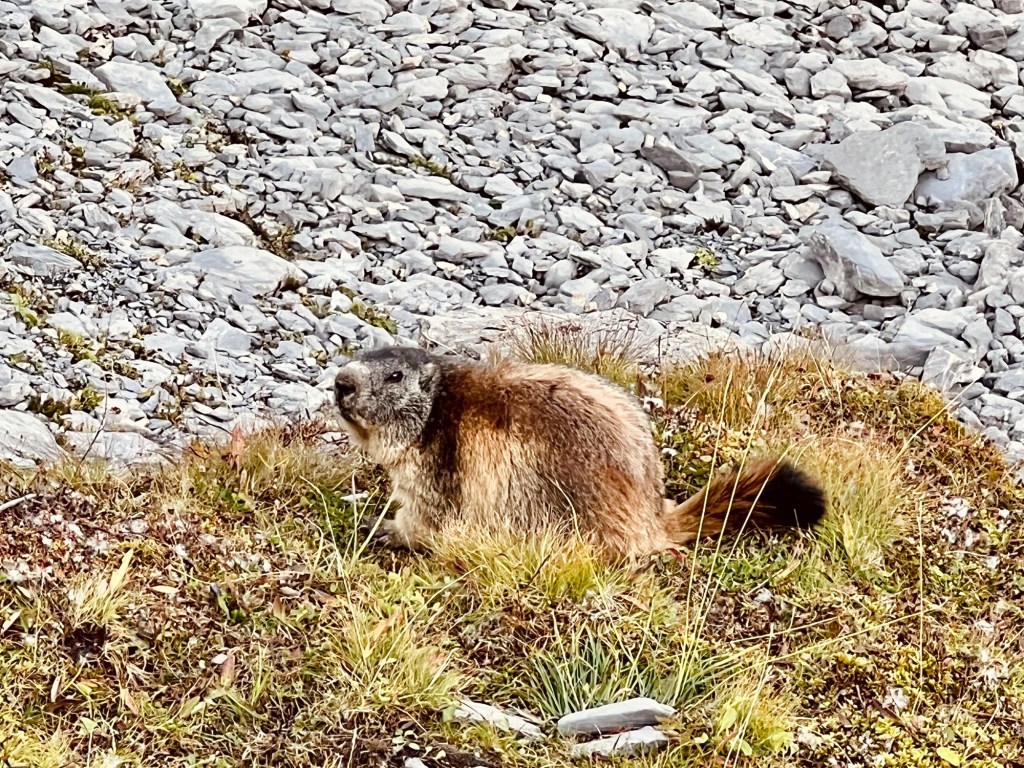 Der Tag beginnt mit vielen idyllischen Highlights, so dem Abschiedsblick auf die Hochebene, dem einsamen See Lac d’Anterne und dem Blick vom Pass Col d’Anterne auf das nächste Tal und – zum ersten Mal – auf das Mont Blanc-Massiv am Horizont. Es folgt der Abstieg ins nächste, einsame Tal und der erneute lange Aufstieg auf der anderen Seite. Auf dem Höhengrad zum Le Brévent (2525m) mit bewölkten Panoramablick auf das Mont-Blanc-Massivist der Weg gut durch eine zerklüftete Steinwüste geführt. Da sowohl die Gipfelbahn ins Tal und als auch die anvisierte Hütte Bellachat geschlossen haben und für den nächsten Tag sehr schlechtes Wetter (Schnee/Regen) angesagt ist, entscheide ich mich für den Abstieg als Gewaltmarsch (1100m in 2 Stunden im steilen Gelände) auf Adrenalin im Kampf gegen die Dämmerung. 12 Stunden war ich heute unterwegs. 3700 HM an einem Tag werde ich zum Glück nicht mehr auf dem GR 5 laufen. In Erinnerung bleiben aber auch die Steinböcke und Murmeltiere, die ich heute zum ersten Mal in den Alpen gesehen habe.