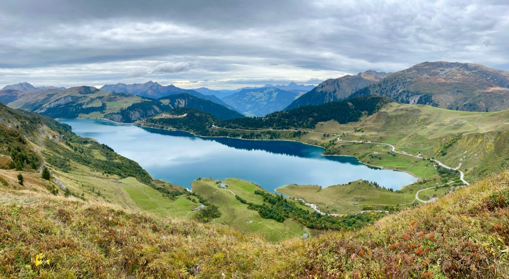 Die Hüttenwirtin verabschiedet uns heute mit den Worten, dass wir ihre letzten Gäste in diesem Jahr seien und sie heute die Herberge für diesen Winter abschließt. Und tatsächlich – so stellt sich später heraus – ist dies auch meine letzte bewirtschaftete Hüte auf dem GR5. Dank des guten Wetters ist dies eine Wanderung mit hervorragenden Ausblicken. Beim Aufstieg zum Col du Bonhomme fasziniert die Südwestflanke des Mont Massivs. Bei der phänomenalen Tour über den Gipfelgrad der Crête des Gittes bindet vor allem das Panorama der italienisch-französischen Grenzgebirgskette im Osten den Blick. Der türkisfarbene Stausee Lac de Roselend ist abends bestimmend. Ohne die folgende Nacht ist dies einer der landschaftlich herausragenden Tage meiner GR 5-Wanderung.