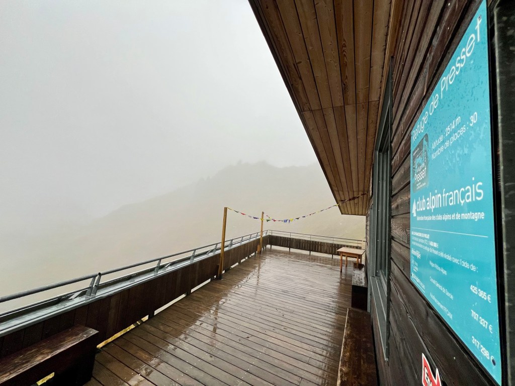 Den Tag halte ich kurz und steige nur im Regen zum Refuge des Presset (2514m) auf, das sich nach Saisonende als top-ausgestattete Selbstversorgerhütte präsentiert. In der Nacht zuvor hatten Windbögen mehrfach mein Zelt umgeweht bzw. die Heringe rausgerissen, so dass ich um 0.30 eingepackt habe, um ins Tal abzusteigen und schlaflos im Schutz des Carports eines Hauses auf den Tag zu warten. So genieße ich heute den halben Wandertag, habe die Hütte für mich alleine, säge Holz für den warmen Ofen und hole Schlaf nach.