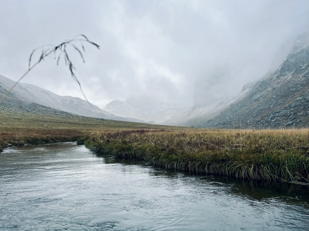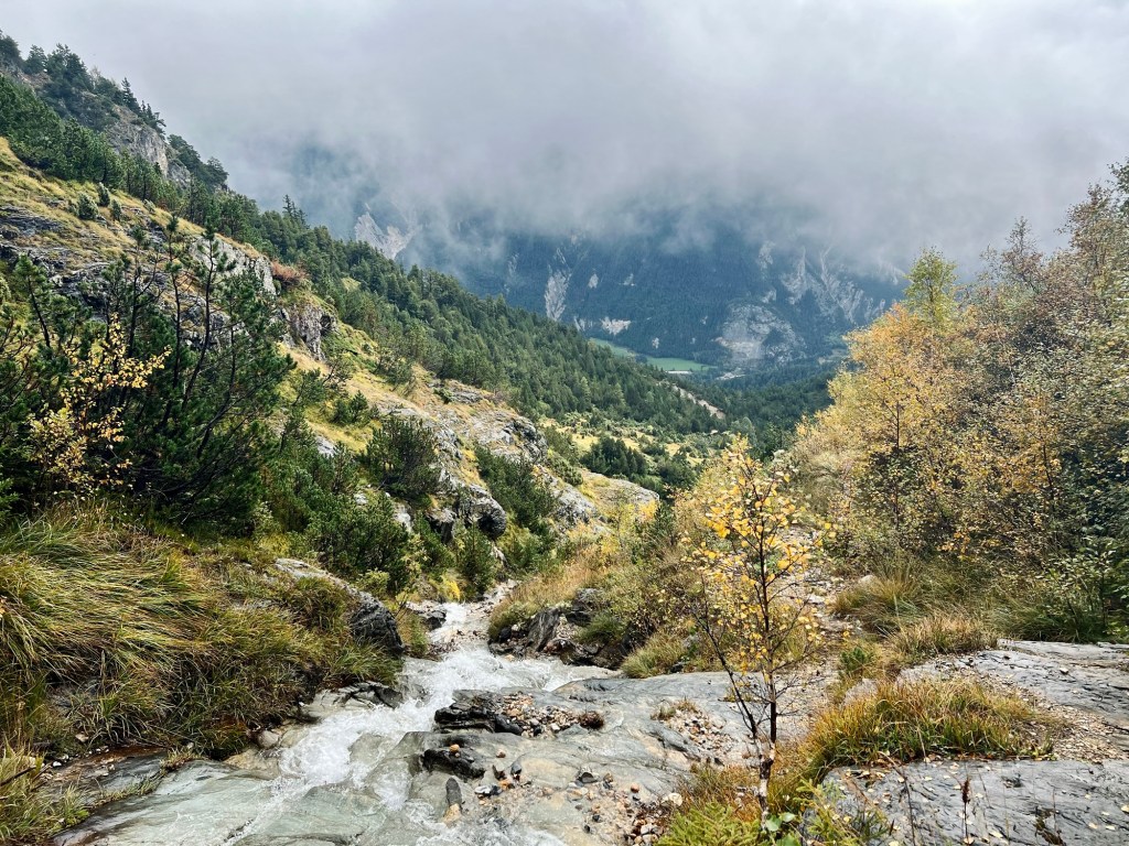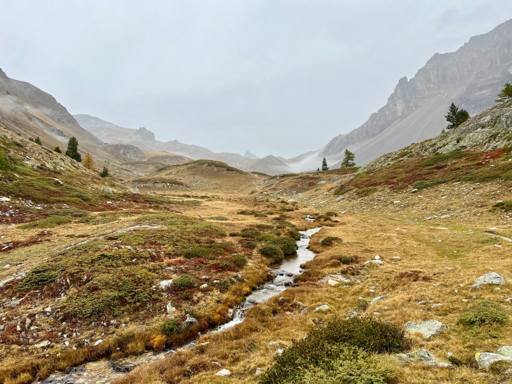 Aus Briançon führt der GR 5 ein Tal hoch in die Wolken zum Col des Ayes (2477m). Von dort steige ich in den Naturpark Queyras ab, in dem ich nun ein paar Tage bleiben werde. Der Abstieg führt durch eine grandiose Landschaft aus steilen Felswänden, Hochebenen und Wildbächen.