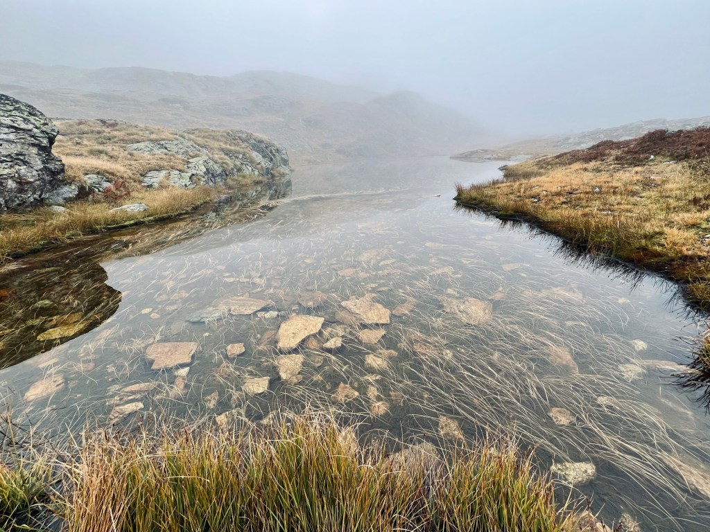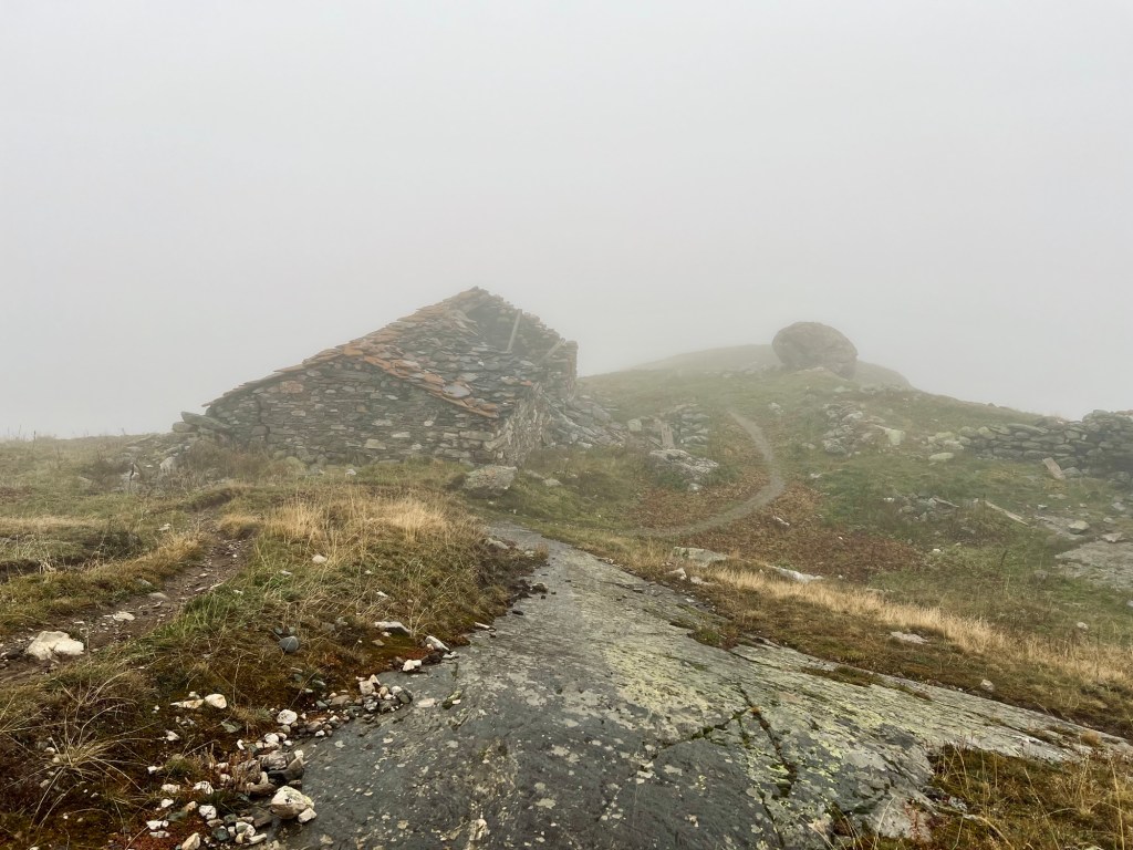 Eine der landschaftlich schönsten Etappen des Weges hätte dieser Tag werden können, wenn nicht dichter Nebel / leichter Schnee mit einer Sicht von teils nur 20 Metern den Tag geprägt hätte. Da ich langsamer als gewohnt unterwegs bin und die Gefahr besteht, die nächste Hütte erst in der Dämmerung zu erreichen, halte ich die Etappe kurz und treffe im Schutzraum der Hütte erstmals andere Wanderer:innen.