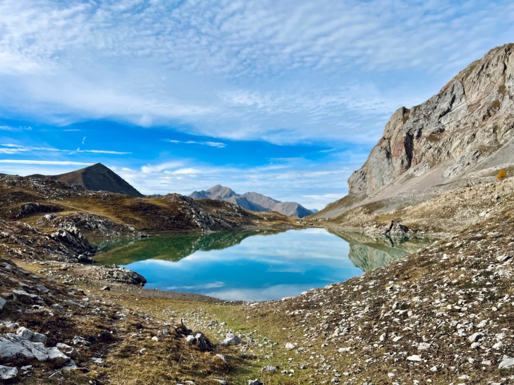 Bei perfektem Herbstwetter bin ich entlang der wunderschönen Bergseen Lac Miroir und Lac Saint-Anne – in denen sich herrlich die steilen Bergketten im Hintergrund spiegeln – zum Col Girardin (2699m) aufgestiegen. Bei wolkenlosen Himmel bot sich sich hier eine denkwürdige Fernsicht. Der Abstieg führte in das wilde und schöne Ubaye-Tal, dem ich bis zum Aufstieg nach Fouillouse gefolgt. Ein perfekter Tag, abgesehen davon, dass alles zu hat und die zweite Nacht draußen um den Gefrierpunkt auf mich wartet.
