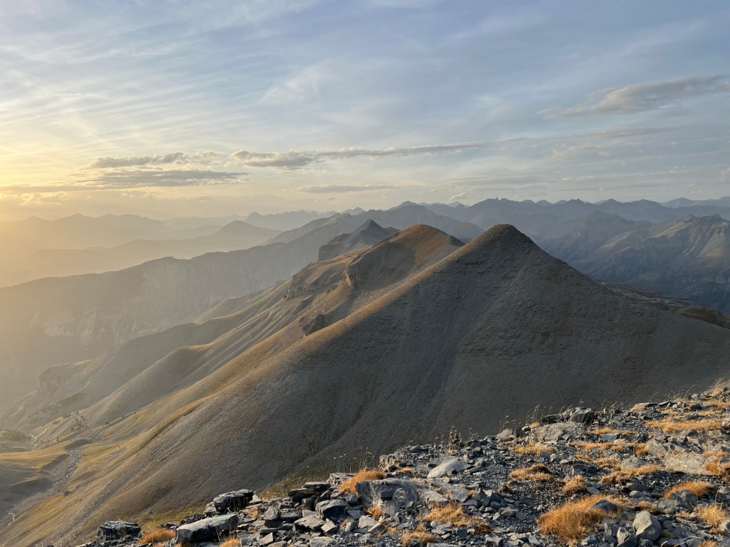Im Nationalpark begrüßt mich die Morgendämmerung bevor ich in die Wolken aufsteige. Am Pas de la Cavalle (2671m) eröffnet sich ein grandioser Blick gen Süden auf das unterhalb liegende Tal Salse Morene. Nach einem weiteren Pass und dem Abstieg bis Bousiéyas entscheide ich mich schweren Herzens, den GR 5 für heute zu verlassen, damit ich es noch nach Saint-Étienne-de-Tinée schaffe. Denn meine elektrischen (und physischen) Akkus und Lebensmittel gehen zur Neige. Die 13 km durchs Tal der wilden Tinée, deren Wasser bei Nizza ins Mittelmeer fließt, verströmt schon etwas mediterranes Klima und Flair. Plötzlich fahren Busse nach Nizza …