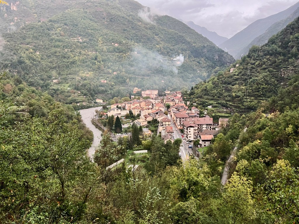 Der Regen der letzten beiden Tage war nicht normal, sondern entpuppt sich als so schweres Unwetter in Südfrankreich (mit bis zu 600l), das auch die deutschen Nachrichten darüber berichten. Der französische Wetterdienst warnt auch für die Region Alpes-Maritimes, in der die Seealpen und meine aktuelle Wanderstrecke liegt, vor Gefahren. Auch wenn sich das Wetter heute beruhigt, lege ich sicherheitshalber einen Pausentag ein, damit das Wasser aus den Bergen abfließen kann. Und so schaue ich mir die beindruckende, kleine Altstadt von Saint-Dalmas an.
