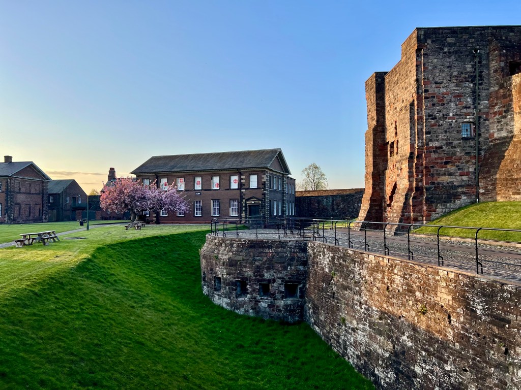 Bei der Anreise schnuppere ich bei der Fahrt durch das Mittelgebirge Pennies und in Carlisle erste England-Luft und fühle mich gleich spontan wohl. Carlisle, wo ich die Nacht vor dem Start schlafe, erkunde ich die schöne Altstadt samt Carlisle Castle und Carlisle Cathedral beim Abendspaziergang. Früher Stadt wegen die Lage an der schottischen Grenze stark befestigt und ein wichtiger Militär-Stützpunkt. Morgen geht es mit dem Zug dann zum Start in St Bees.