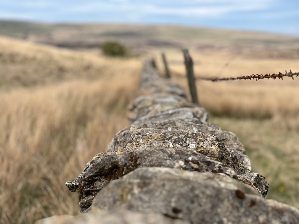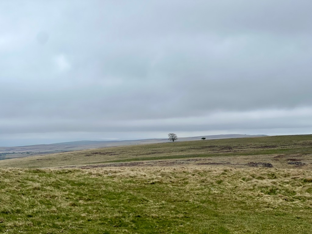 Der Trail führt in die Yorkshire Dales Nationalpark. Er ist Teil Mittelgebirge Pennines, dass das Binnenland Nordenglands prägt. Und größer könnte der Kontrast und die Veränderung des Landschaftsbildes kaum sein. Mich erwartet eine karge Einöde aus Gräsern und Flechten. Die Weite hat eine unendliche, friedliche und raue Einsamkeit. Meilenweit stehen weder Baum noch Mauer. Wind und Wetter ist man hier schutzlos ausgeliefert. Dies ist eine Landschaft die diesen vormittag in silber, braunen und dunkelgrünen Tönen funktioniert. Nachmittags kommt dann die Sonne durch und im nächsten Tal dominieren grüne Schafweiden und verstreute Höfe. Wegen der Länge gilt auch diese Etappe als hart, denn es geht immer leicht auf- oder abwärts.
