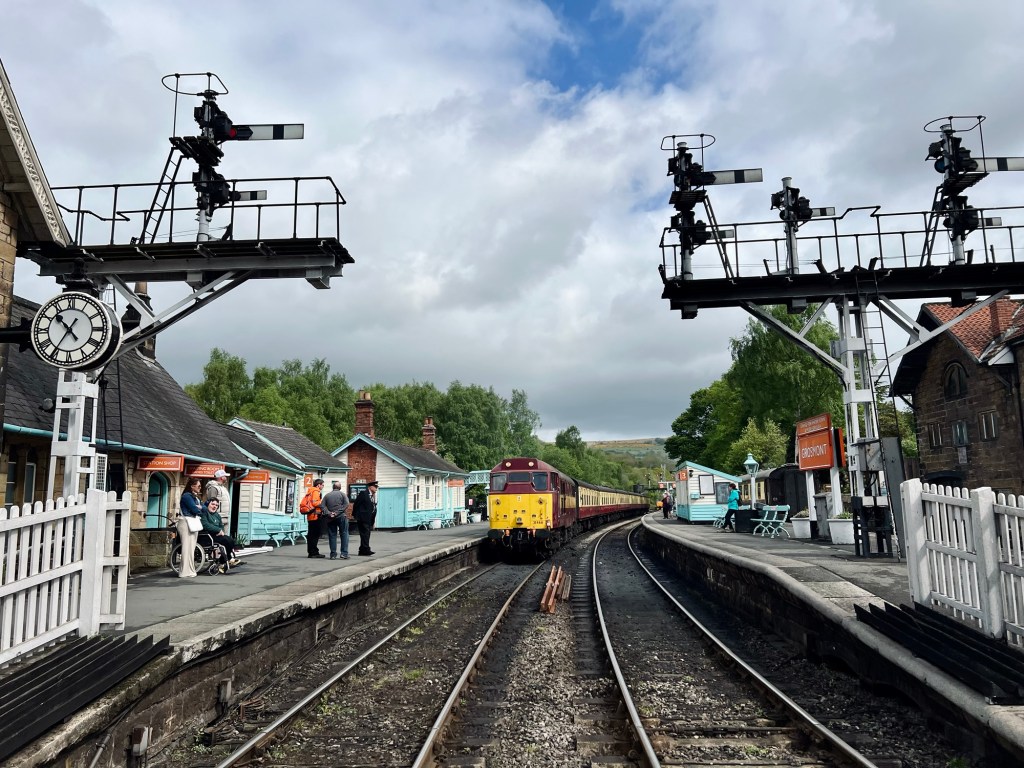 Die letzte Etappe ist abwechslungsreich und Highlight. Sie führt erst durch das Tal des Esk mit herrschaftlichen Anwesen bis Grosmont, mit seinem herrlichen Old-Style-Bahnhof. Über das Moor geht es in das idyllische Tal des May Beck (inkl Wasserfall Falling Foss). Eine letzte Moor-Passage führt dann zur Steilküste, der man ein paar KM folgt. Der C2C endet im malerischen Fischerort Robin Hoods Bay, wo ich meinen Stein der Nordsee überantworte.
